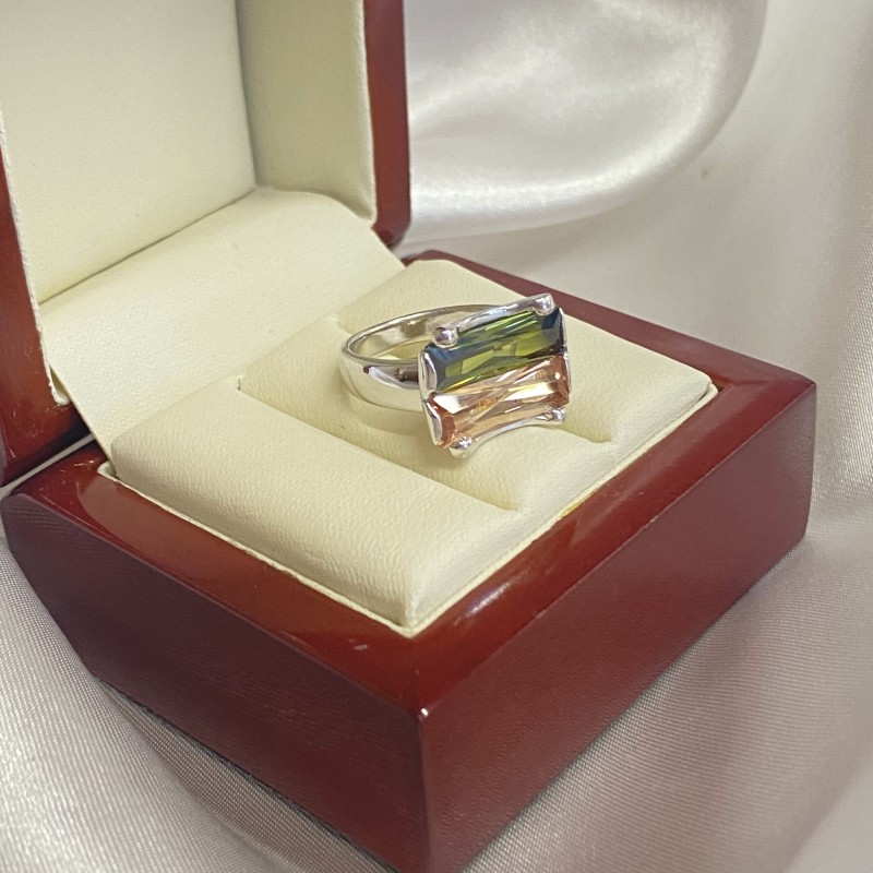 Anel adorável e luxuoso com charmosas zircônias cúbicas de grande porte coloridas e brilhantes. O anel parece conciso e elegante em uma bela moldura feita de prata esterlina 925, criando uma composição brilhante e viva. Vai enfatizar perfeitamente a delicadeza, o charme e a beleza natural das suas mãos! O design original do anel refletirá sua individualidade!