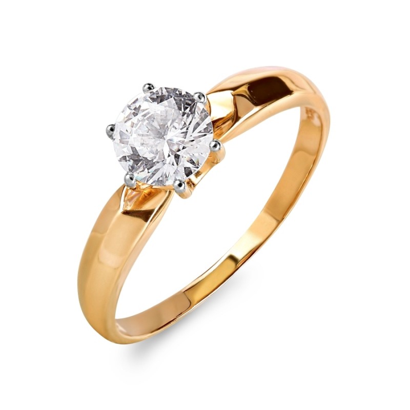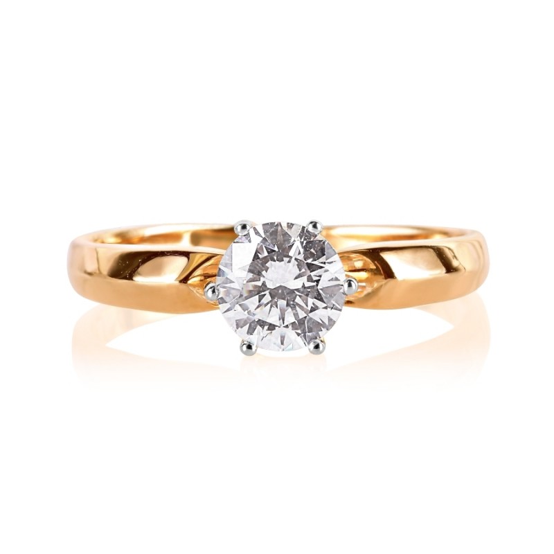 Anel feito de ouro vermelho russo amostra 585 com fianites Swarovski® ¢ 6,0 mm