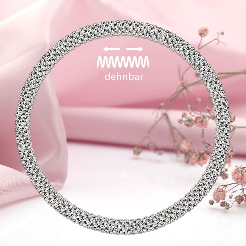 Charmosa pulseira volumétrica, flexível e elástica, confeccionada em prata 925 com trama sofisticada. Tecer