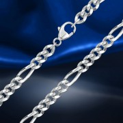 corrente Figaro é um modelo bastante incomum. O colar Figaro é frequentemente usado em ocasiões festivas e é adequado tanto para mulheres como para homens. Devido ao seu design interessante, não há uma demarcação clara do colar entre os sexos. Homens e mulheres podem usá-los igualmente. O colar Figaro combina melhor com roupas atraentes. A rede Figaro é a melhor escolha, principalmente para tipos extravagantes. Banhado a ródio!