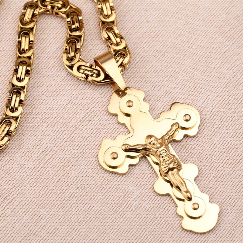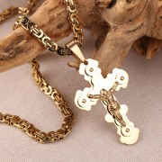 O colar de trança real em ouro amarelo apresenta um grande pingente de cruz com um crucifixo!