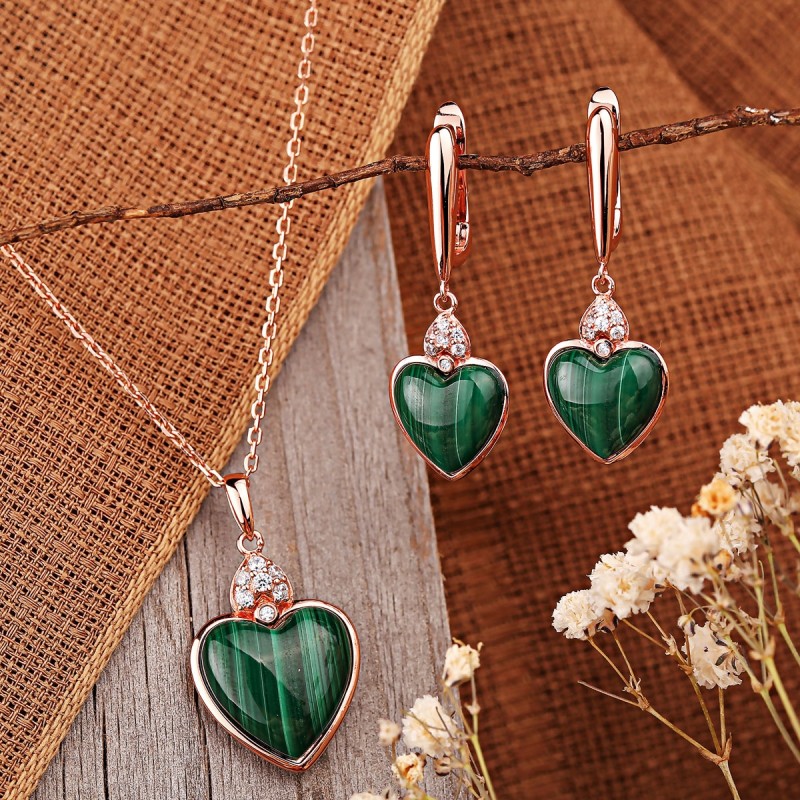 Malachitschmuck é considerado um dos mais bonitos e deliciosos. Esta pedra é famosa por sua cor verde única e atrai a atenção com sua textura incomumente bonita. Uma ótima oportunidade de se estragar ou fazer de seus entes queridos um presente que sublinha a ternura, o charme e sua beleza natural!