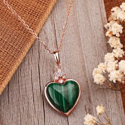 Material: prata 925 Tipo de processamento: corte de diamante, dourar tecelagem: anker Uso: 1 coração malaquita 16,0 x 16,0 mm; 7 zircônia Ø 2,0 mm dimensões da parte decorativa: largura 18,0 mm/comprimento 31,0 mm Olho: 5,0 x 3,0 mm Dimensões da cadeia: espessura 1,5 mm/comprimento 45,0 - 49,0 cm Fechamento: Carabiner