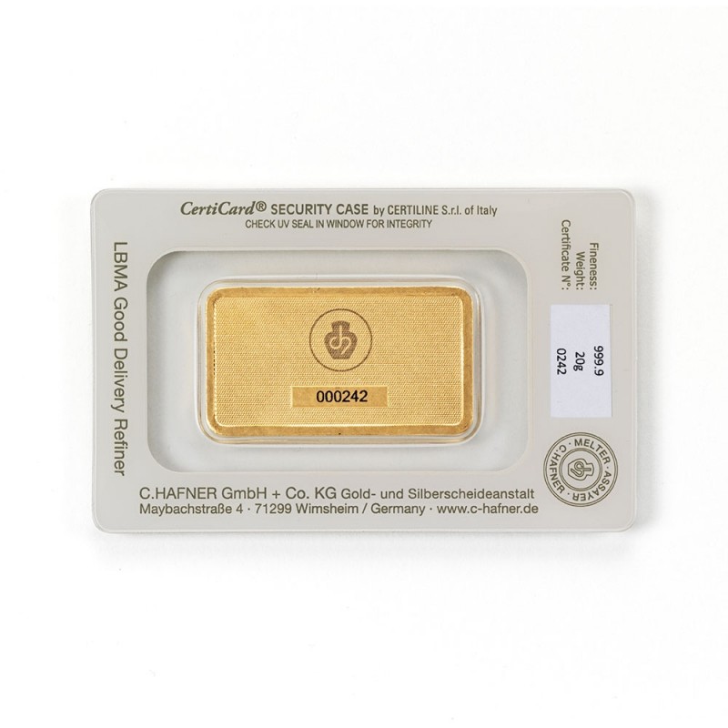 O vale-presente lacrado torna esta barra o presente perfeito! Dê a uma pessoa querida para expressar seu amor e apreço. É mais do que apenas um presente, é um símbolo de consideração que será lembrado por muitos anos. Você quer impressionar um parceiro de negócios ou cliente? A barra de ouro será um presente corporativo sólido e impressionante que mostra seu gosto e respeito impecáveis.