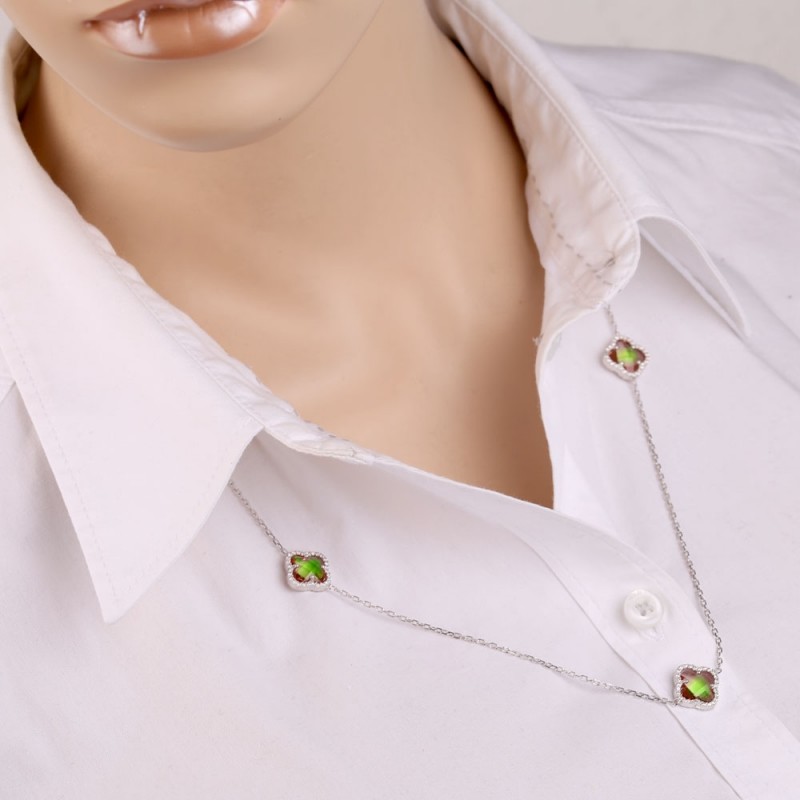 Colier adorabil, delicat, cu zirconii fermecătoare și sultanite unice într-o formă neobișnuită. Colierul arată concis și elegant într-un cadru frumos din argint 925. O oportunitate grozavă de a te răsfăța sau de a oferi persoanei dragi un cadou care să pună în evidență tandrețea, farmecul și frumusețea naturală! Impletitura lant de ancora cu taietura in diamant.