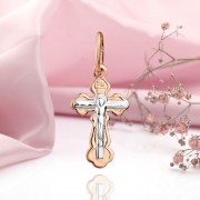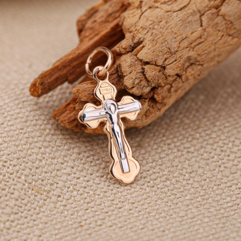 Cumpărați aur rusesc 585 în Germania - pandantiv cruce din aur roșu 585 cu crucifix. Pe spate se află rugăciunea de protecție: „Salvează și protejează.” Crucea nu se zgârie când este purtată.