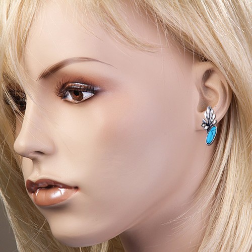 Cercei cu turcoaz (13 x 5 mm) înălțime aproximativ 25 mm, lățime aproximativ 12 mm