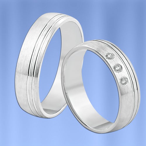 Inel din aur alb (mat) 585 cu diamante (3 x 0,02 ct). Diamante de calitate W/SI. Lățimea inelului 5,5 mm