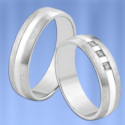 Inel din aur alb (mat/lucitor) 585 cu diamante (3 x 0,01 ct). Lățimea inelului 5,5 mm