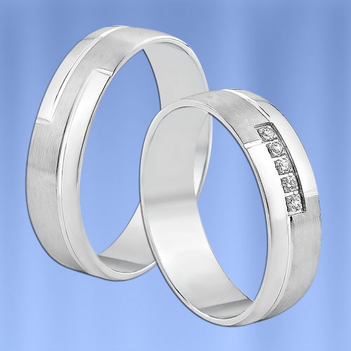 Inel din aur alb (mat/lucitor) 585 cu diamante (5 x 0,01 ct)