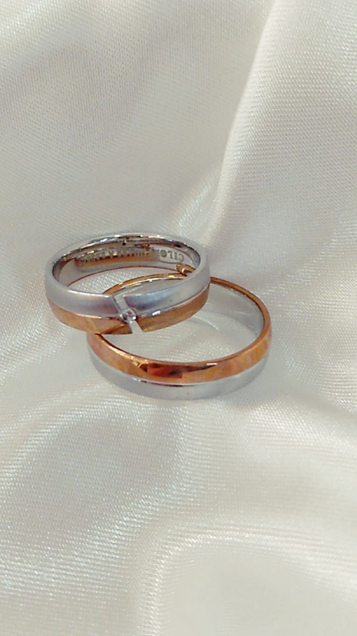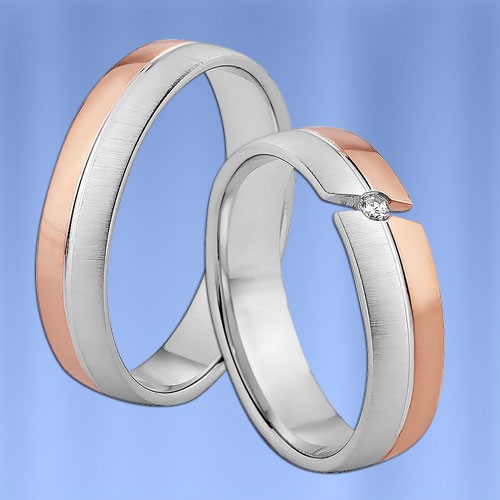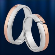 Inel bicolor din aur roșu și alb 585° (mat / strălucitor) cu diamant (1 x 0,02 ct)