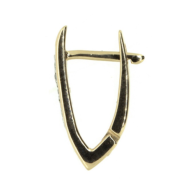 Cercei laconici, austeri, cu diamante de formă clasică, din aur roșu rusesc dintr-un aliaj tradițional conform GOST, 10 diamante tăiate strălucitor KR-57 cu o greutate de 0,10 carate. Închiderea cerceilor englezești este fiabilă și practică.