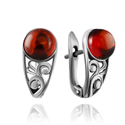 Cercei frumoși din argint 925 placat cu rodiu, cu chihlimbar, uimitoare „piesa de soare” în tonuri de coniac și cadru de bijuterii filigran! O oportunitate unică de a-ți sublinia individualitatea, de a transmite imaginea de feminitate, soare și tandrețe.