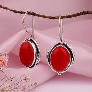 Cercei eleganti din argint 925 înnegrit cu inserții frumoase de coral. Culoarea roșie a coralului este culoarea pasiunii, atrage atenția, pur și simplu este imposibil să nu o observi! Este asociat cu dragostea, bucuria și atrage priviri admirative. Un produs din argint și coral este o combinație uimitoare de eleganță, lejeritate și individualitate și conferă bijuterii un farmec și o inspirație deosebită.