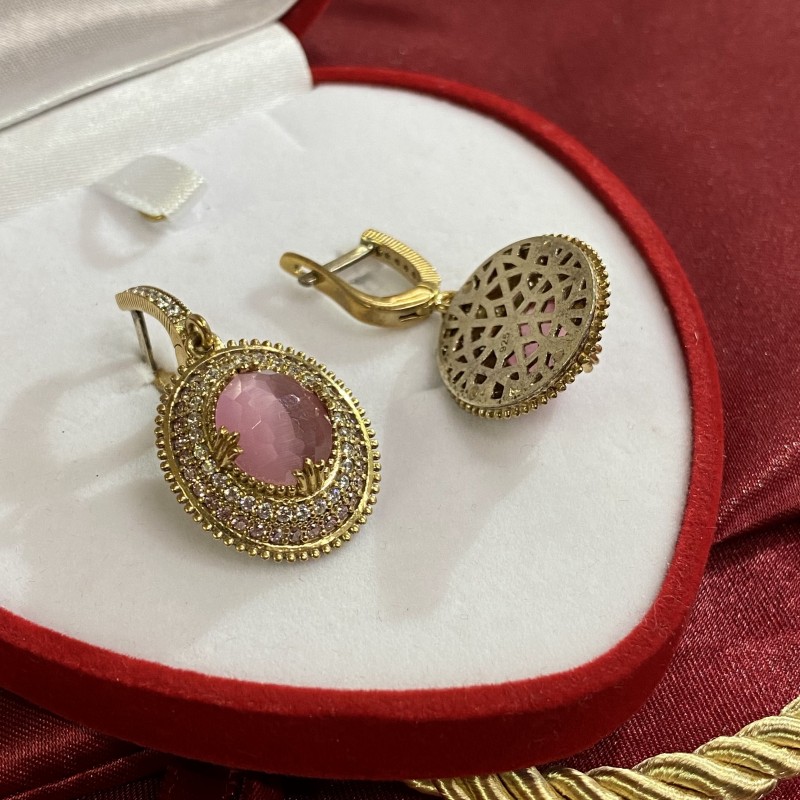 Cercei cocheti din argint 925 placat cu aur, decorati cu ulexite incantatoare si zirconiu stralucitor! Acești cercei emană șic și irezistibilitate. Cu ele vei fi atrăgătoare în orice ținută!