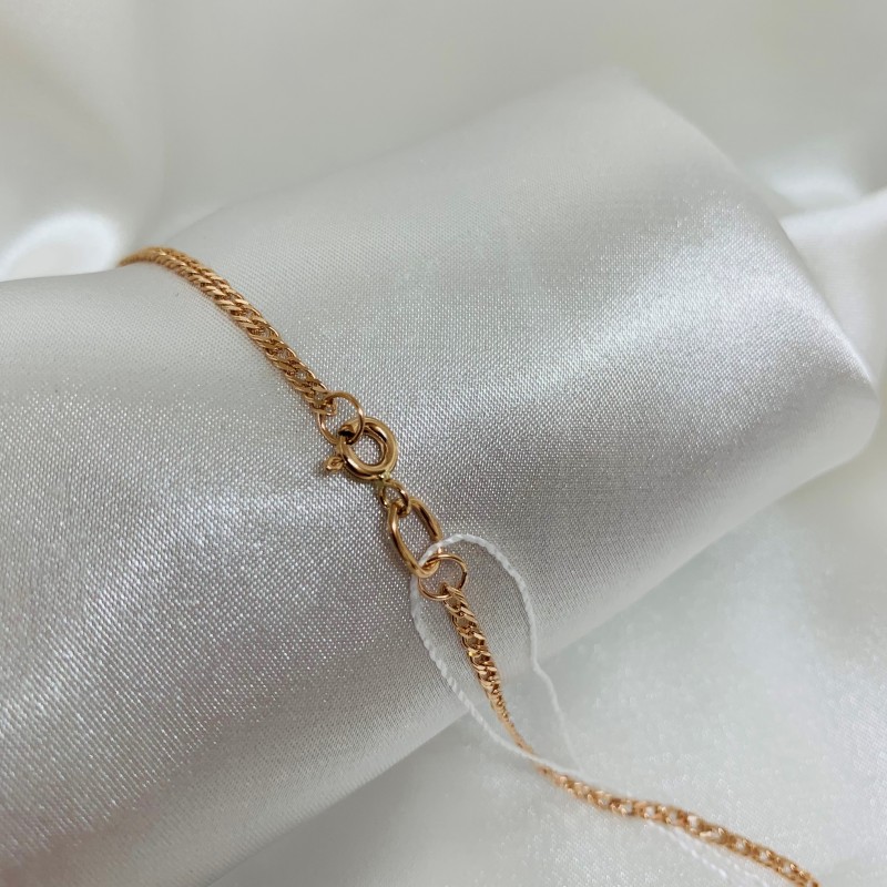 Lanț de aur 585 feminin și în același timp puternic, cu tăietură de diamant strălucitor. Lanțurile și brățările din aur creează accentul necesar în imagine și atrag atenția asupra bogăției și luxului accesoriilor, deoarece aurul este frumos, stilat, șic, scump.