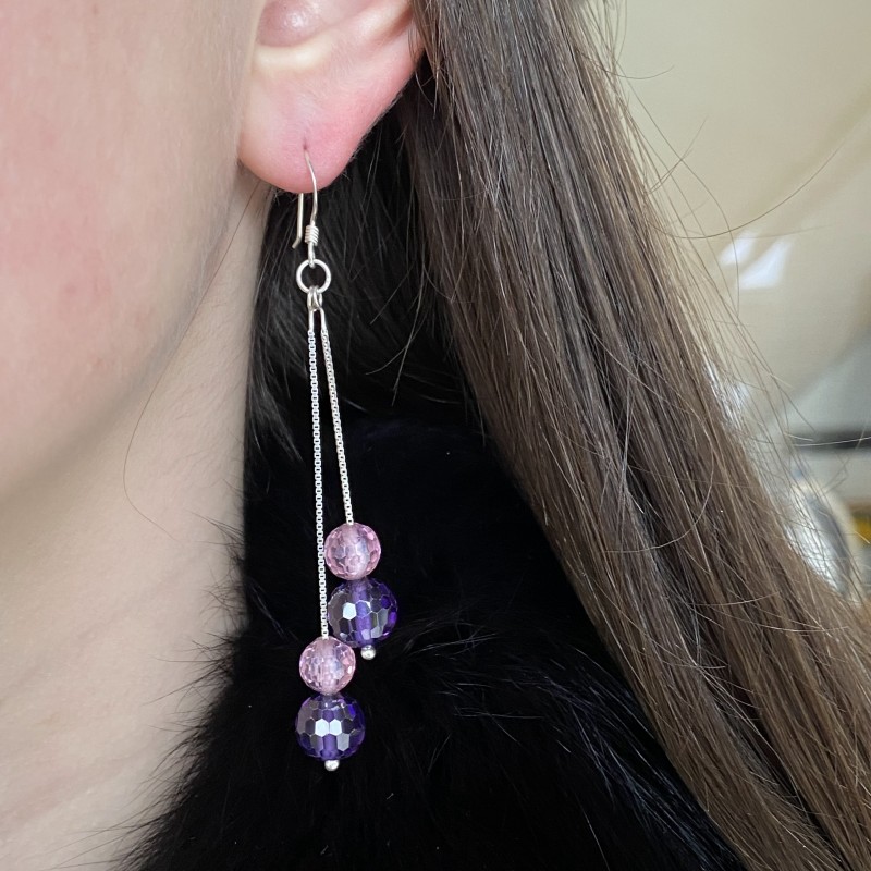 Cercei șic, eleganți, cu închidere cu cârlig. argint 925! Cristale Swarovski® atârnă aerisite pe lanțuri pătrate de argint din împletitură „șarpe”. Un cadou sau o oportunitate grozavă de a te răsfăța.