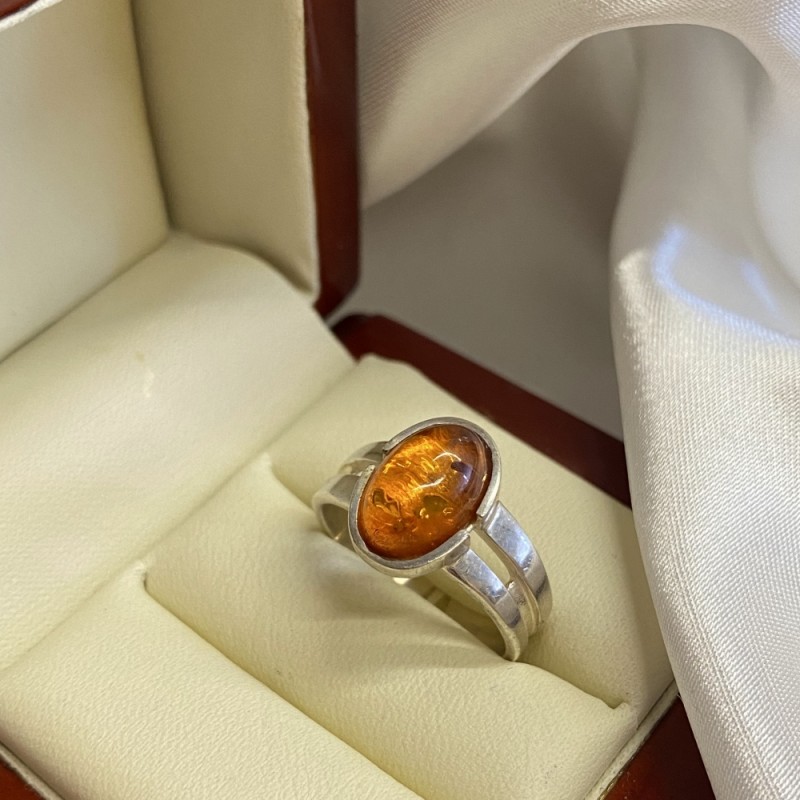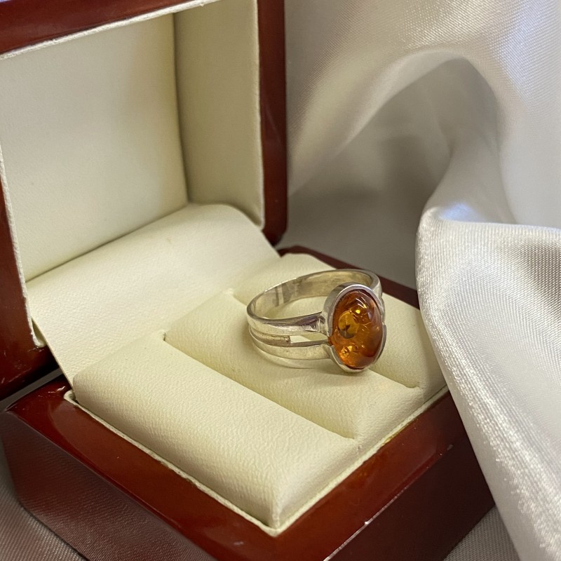 Inel elegant din argint 925, decorat cu chihlimbar, cu aceasta uimitoare „piesa de soare”, in toate nuantele de culoare coniac, te va incanta si incanta datorita frumusetii sale! Inelul va sublinia perfect tandrețea, farmecul și naturalețea frumuseții tale și va atrage atenția asupra feminității mâinilor tale.