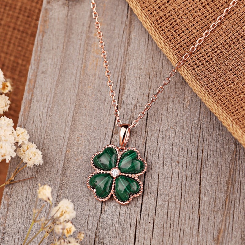 Argint aurit în Germania. Un remorcă filigranată din roșu -gold -gloss 925 argint sterling, decorat cu un malachit magnific și zirconii spumante. Designul lanțului de ancorare cu o tăietură de diamant oferă bijuteriilor strălucitoare și eleganță suplimentare.