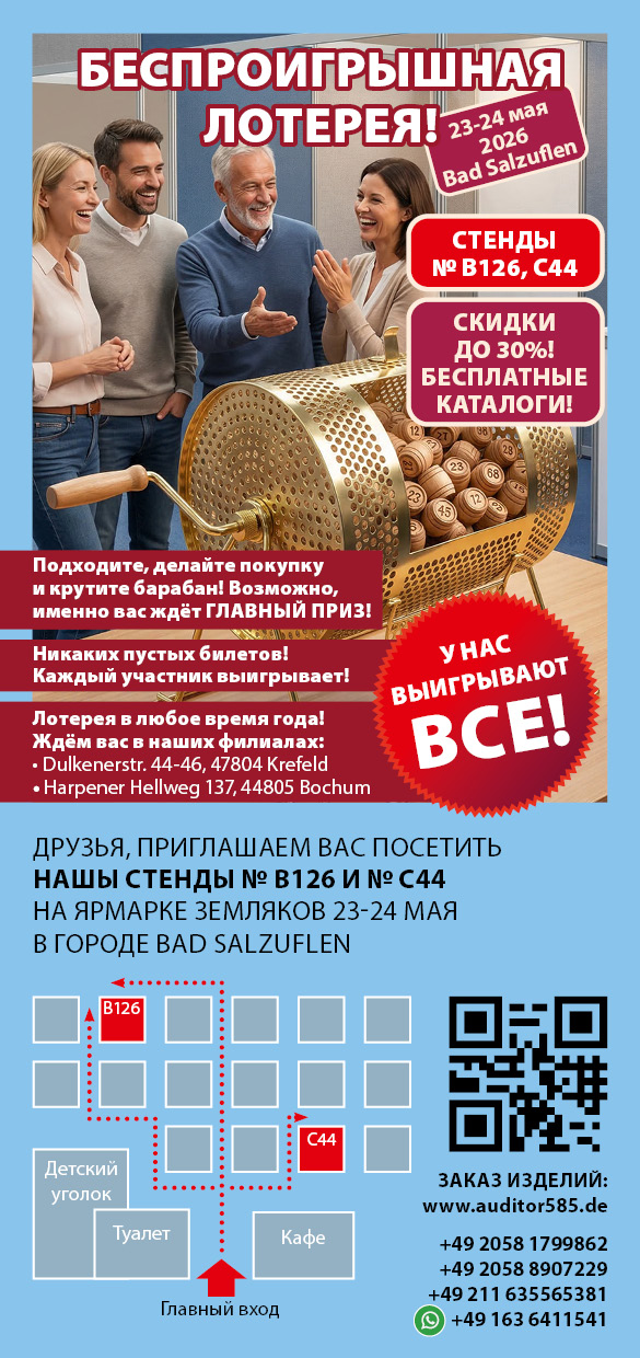 Купить билеты на русскую ярмарку 2026 можно в нашем магазине, кликнув по этой ссылке - https://www.auditor585.de/shop/show-products/690/1/20/russkaya-yarmarka-v-germanii-2026/