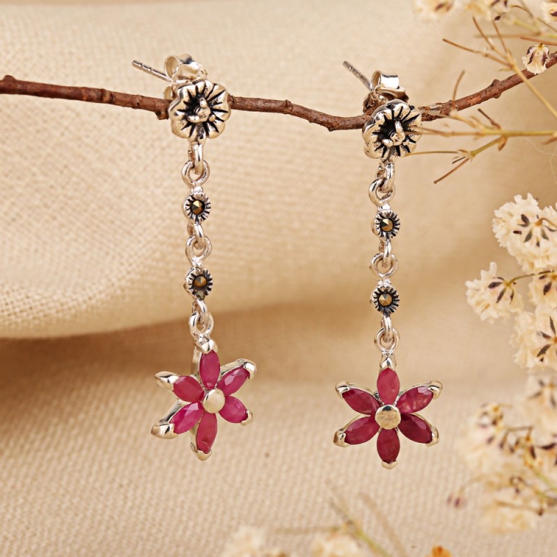 Серьги Серебряные с Марказитом —  марказит природный минерал от латунно-желтого цвета до оттенков серого, зеленого, реже — черного. Основной тон зависит от пропорций включения металлов (кобальта, сурьмы, меди и других). На воздухе окисляется, из-за чего появляется налет на поверхности камня — он переливается разными цветами. Лучше всего камень сочетается с серебром, в более дорогие металлы его обрамляют редко. Великолепно марказит смотрится рядом с жемчугом, бирюзой, агатом, сердоликом, изумрудом, ониксом. Марказит используют как в женских, так и в мужских украшениях. С ним создают кольца, серьги, броши и браслеты.