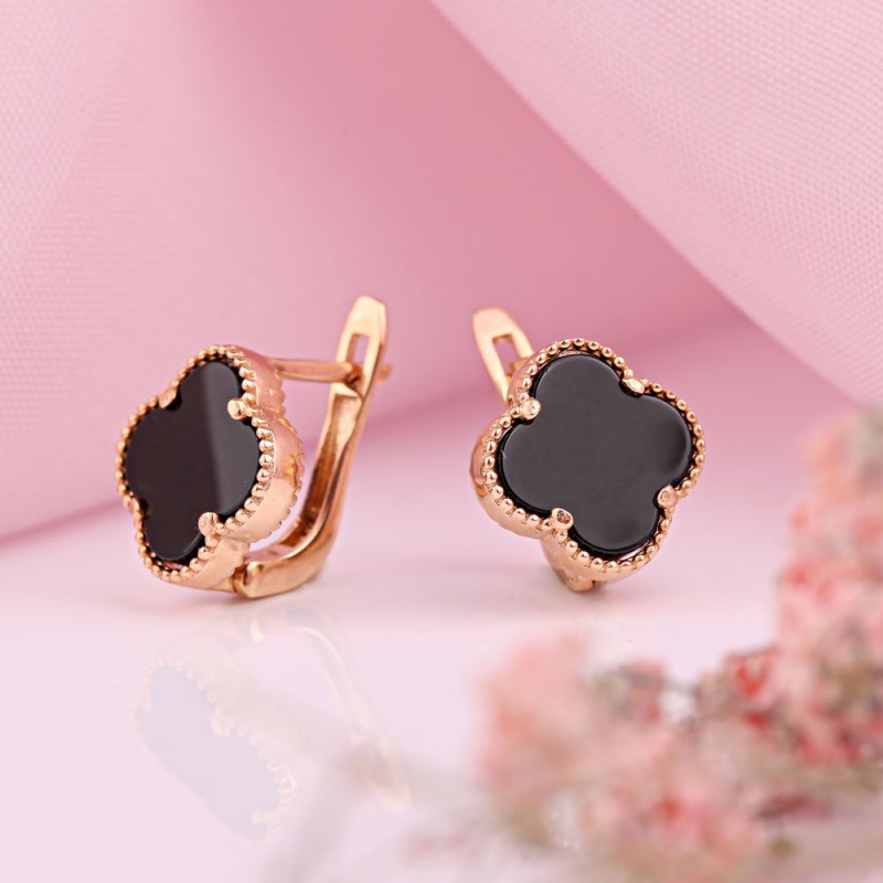 Серьги Золотые с Ониксом - Оникс — халцедоновая разновидность кварца, который знаменит своим необыкновенным полосатым окрасом. Присмотревшись, можно увидеть, как в минерале интересным образом переплетаются окрашенные в разные оттенки слои, которые образуются благодаря содержанию разноцветных примесей (например, меди и железа). Таинственный камень образуется в термальных источниках строго при определенных условиях влажности и температуры, поэтому его запасы в мире стремительно уменьшаются. Этим объясняется популярность золотых серег с ониксом среди любителей нетривиальных украшений, не похожих на остальные.