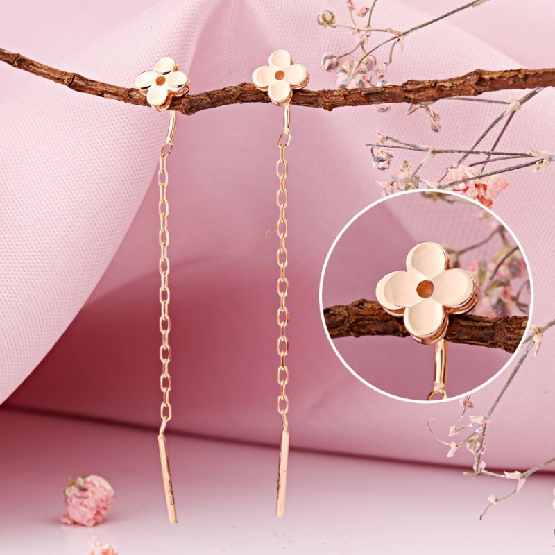 Серьги продёвки золотые— оригинальные модели, которые отличаются от традиционных сережек отсутствием замка. В их конструкцию входят длинная задняя цепочка и передняя декоративная часть. Цепь легко продевается в прокол благодаря гладкому кончику.