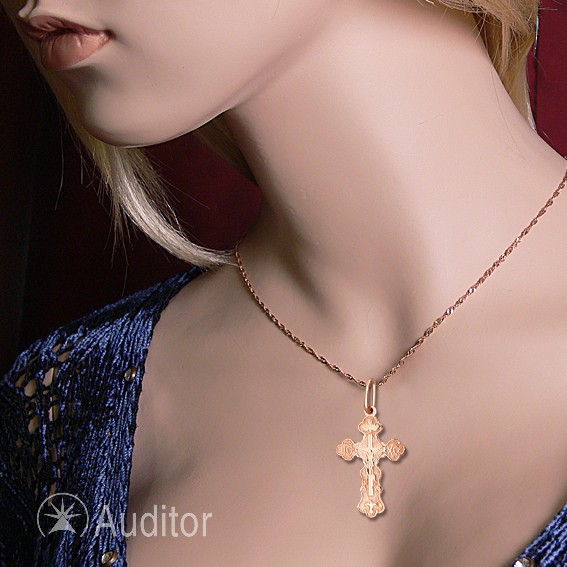 Московский ювелирный завод Кулон-крестик из русского красного золота 585°. Длина с ушком ок. 27 мм., ширина ок. 15 мм.