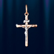 Крестик-кулон Русское золото, двухцветный.
