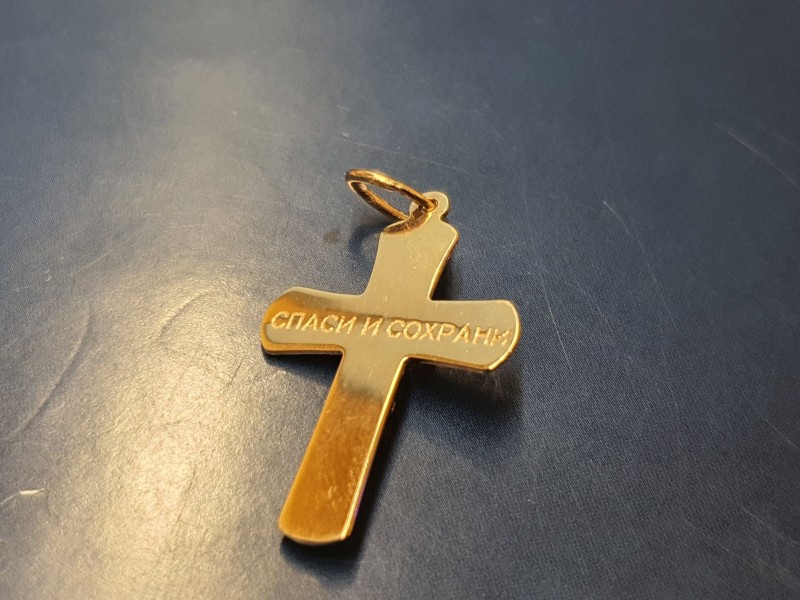 Крест-кулон из русского золота 585°, двухцветный. Длина с ушком ок. 34 мм., ширина ок. 19 мм.