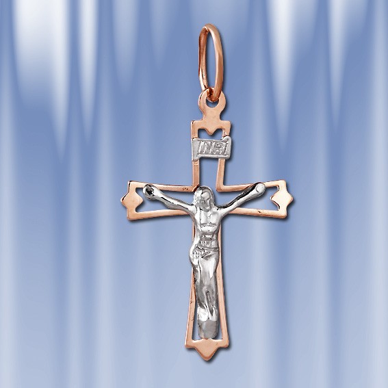 Крест-подвеска из российского золота 585 пробы, двухцветный. Длина с ушком ок. 42 мм., ширина ок. 22 мм.