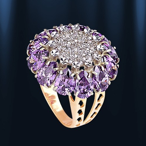 Вставка: бриллианты 0,29 карата VS1; 12 аметистов 3,50 карата (капли 7,5 х 5,0 мм)
