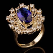 Вставки: 21 бриллиант 3,76 карата, сапфир овал 12,0 х 8,0 см.