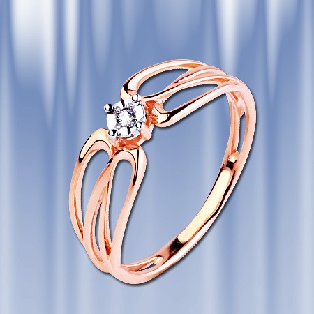 Кольцо из российского красного/белого золота 585° с бриллиантами 0,015 карат.