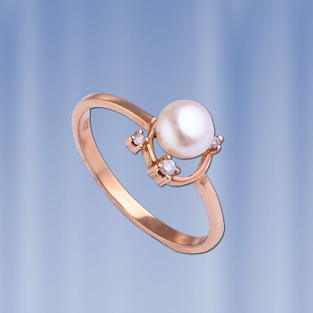 Элегантное золотое кольцо из российского золота 585° с бриллиантами D1:0,03 D2:0,02 карата H S1 и жемчугом.