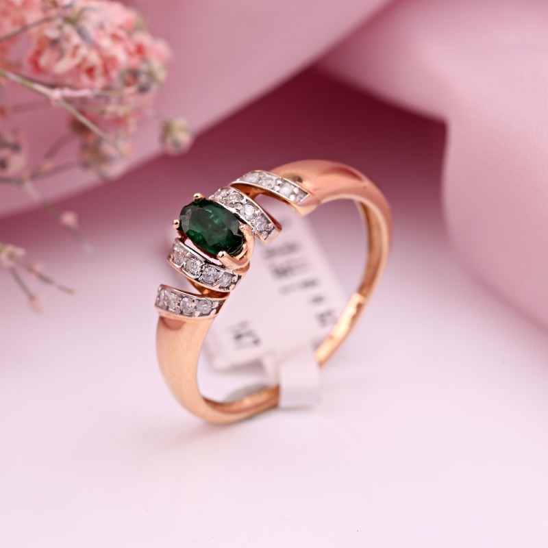 Элегантное кольцо из красного/белого золота 585 пробы с бриллиантами и изумрудом. Красивый подарок любимому человеку!