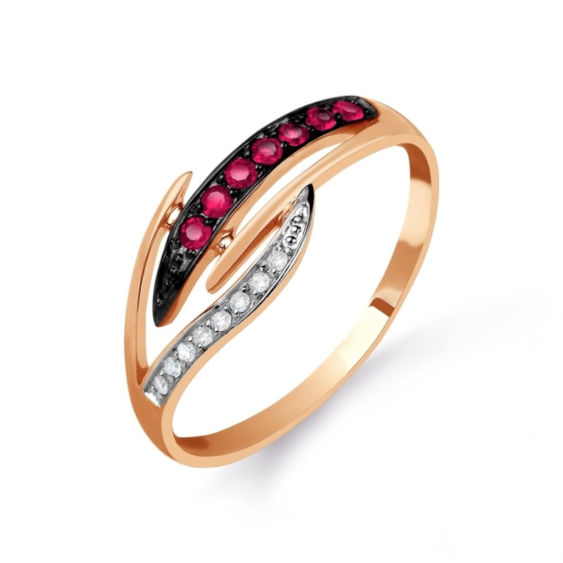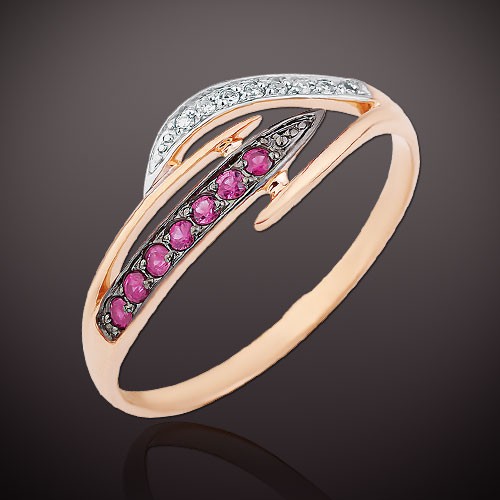 Кольцо из красного/белого золота 585°, украшенное 8 бриллиантами классической огранки 17 0,028 карата 2/3 7 рубинами 0,109 карата 2/2