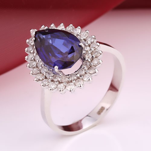 Кольцо из белого золота 585° с бриллиантами классической огранки D.080 карат 14К и сапфирами 12,0 х 8,0 мм 400 карат