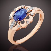 Золотое кольцо с бриллиантами и сапфиром-корундом