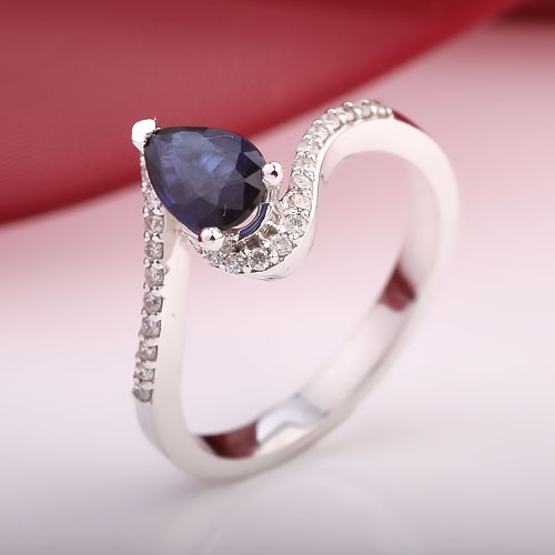 Кольцо из белого золота 585°, украшенное бриллиантами классической огранки и сапфирами