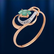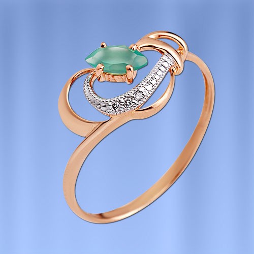 Кольцо из красного/белого золота 585°, украшенное 3 бриллиантами классической огранки 57 0,014 Ct.3/5, Хризопраз 6,0 х 3,0 мм 0,044< ш /> Кольцо порадует Вас красотой и элегантностью.