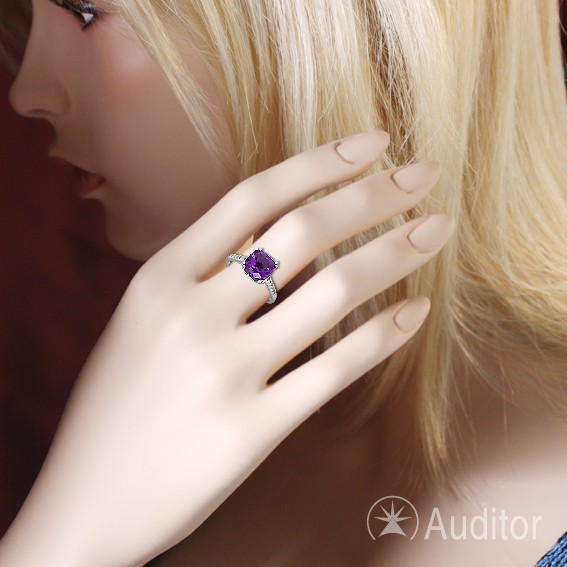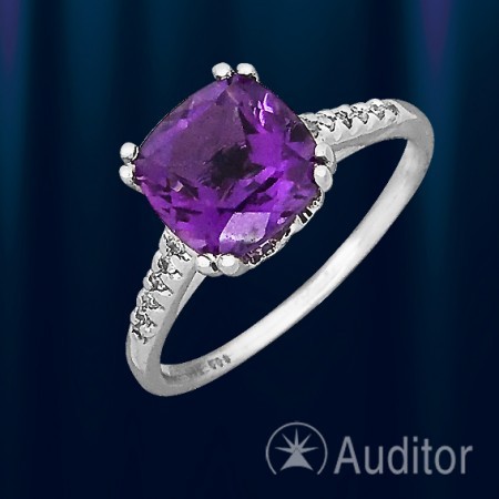 Превосходное кольцо из белого золота 585 пробы с 8 бриллиантами (Хорошо: Хорошо Чистый: SI2: Аметист 0,100 карата)