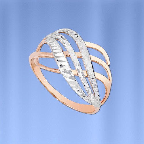 Красивое женское кольцо выполнено из русского красного/белого золота 585°. Высота ок. 13,0 мм