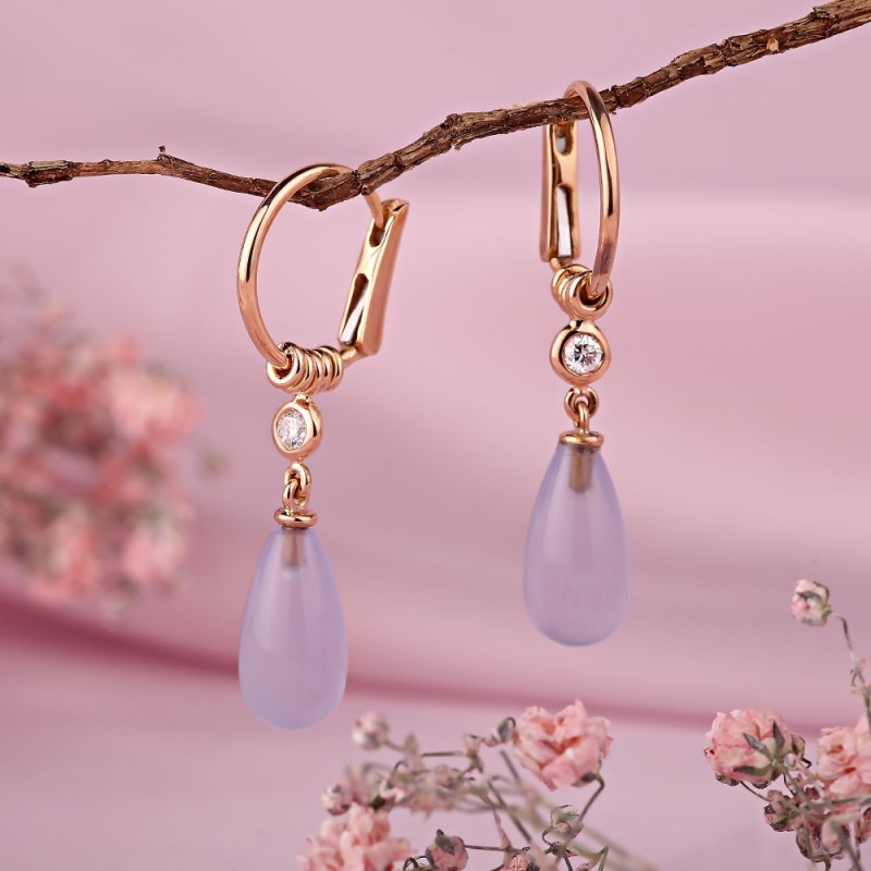 Вставка: 2 бриллианта 0,13 карата. Gsi Ø 2,0 мм; 2 халцедона 8,68 кар. Капля 14,0 х 7,0 мм