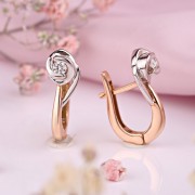 Элегантные золотые серьги из красного/белого золота 585 пробы с бриллиантами.