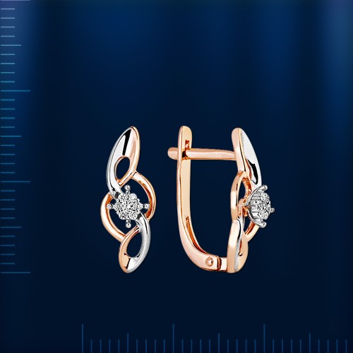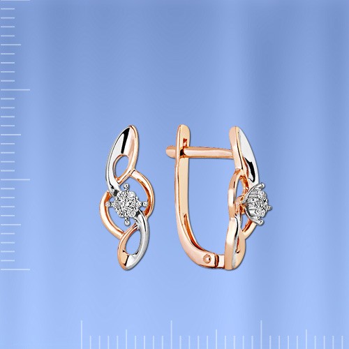 Серьги из российского красного/белого золота 585° (12 бриллиантов 0.045 3/7А 57 кр, 2 бриллианта 0.028ct 3/7А 57 кр)