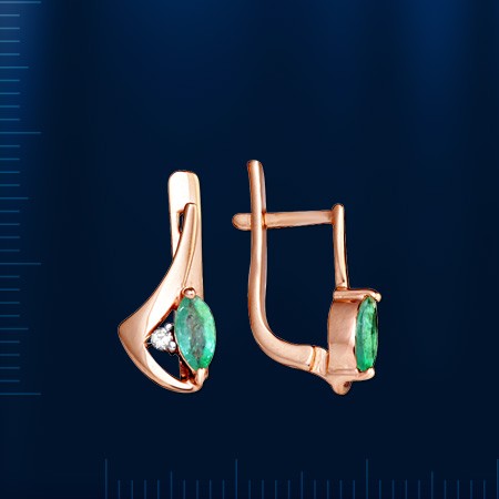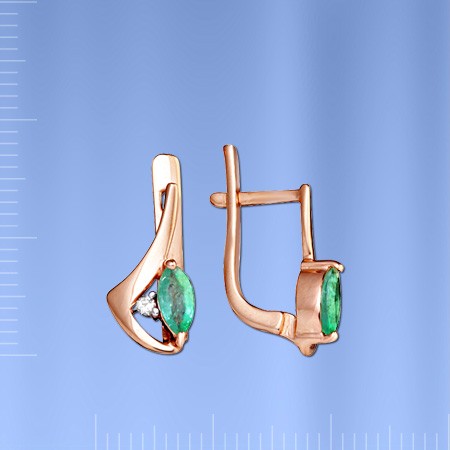 2 бриллианта 0,03 карата 3/5. 2 изумруда 0,44 3/4 высотой ок. 14,0 мм.
