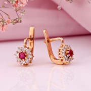 Золотые серьги с бриллиантами и рубинами производства Германии. Элегантные золотые серьги из белого/красного золота 585 пробы с бриллиантами.