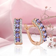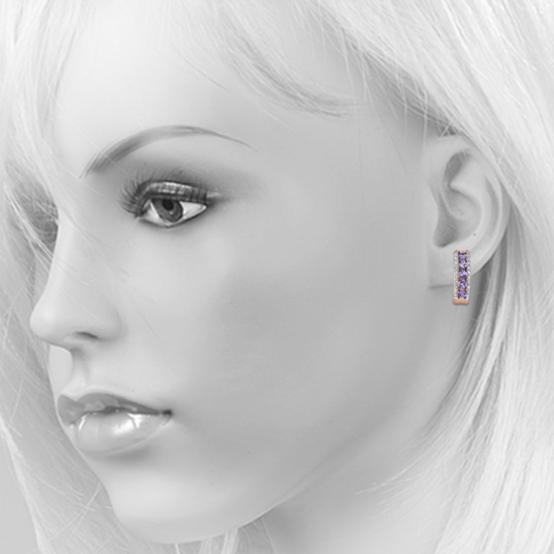 Элегантные золотые серьги из красного/белого золота 585 пробы с бриллиантами и очаровательным танзанитом.