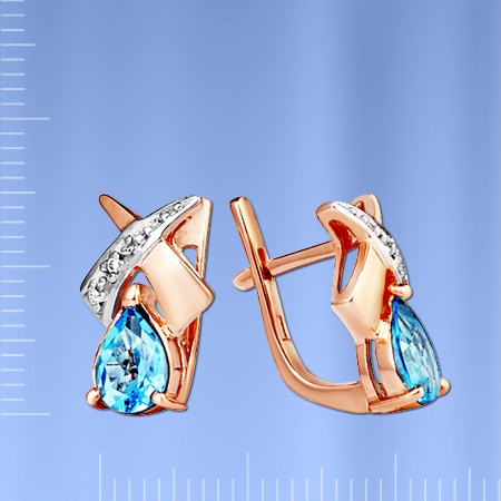 Золотые серьги с бриллиантами и топазами. Элегантные золотые серьги из красного золота 585 пробы с акцентами из белого золота, что по-особому подчеркивает красоту бриллиантов!